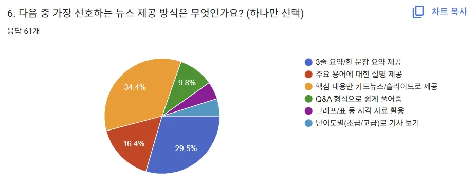 추가적으로 구글폼을 이용한 고객의 니즈를 파악하여 구상했던 핵심 기능들을 명료화하며 프로젝트의 구성을 알차게 준비하는 시간을 가졌습니다.