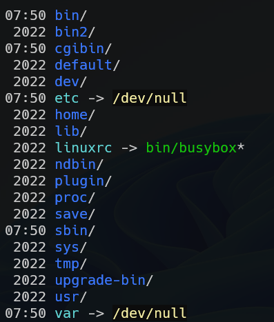 squashfs-root-0 폴더에는 아무것도 없었고, squashfs-root 폴더에는 아래와 같은 파일들이 있었다.