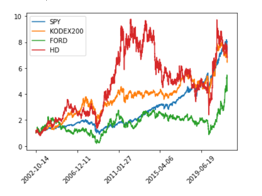 예를들어 위 표를 보면, 개별종목보다 ETF 투자가 일반적으로 좋아보인다. 또한 미국증시가 한국증시보다 일반적으로 좋으니 SPY 60%, KODEX200 40%의 비중으로 아주 간단하게 포트폴리오를 구성 해 볼 수 있다.
