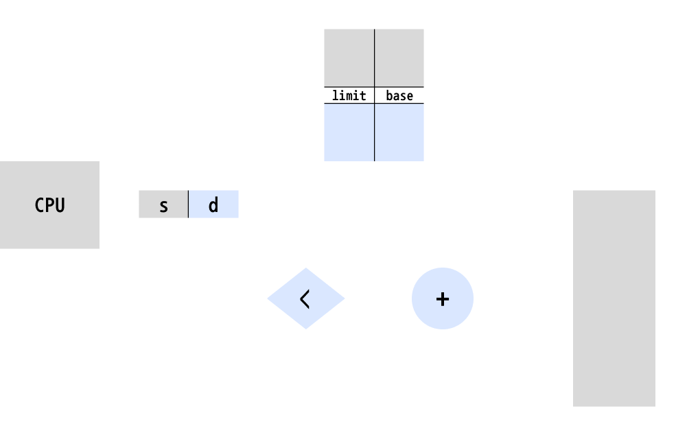 - d > limit 이면 논리주소가 valid 하지 않으므로 trap 발생 (segment 크기를 초과하는 메모리 접근 시도)