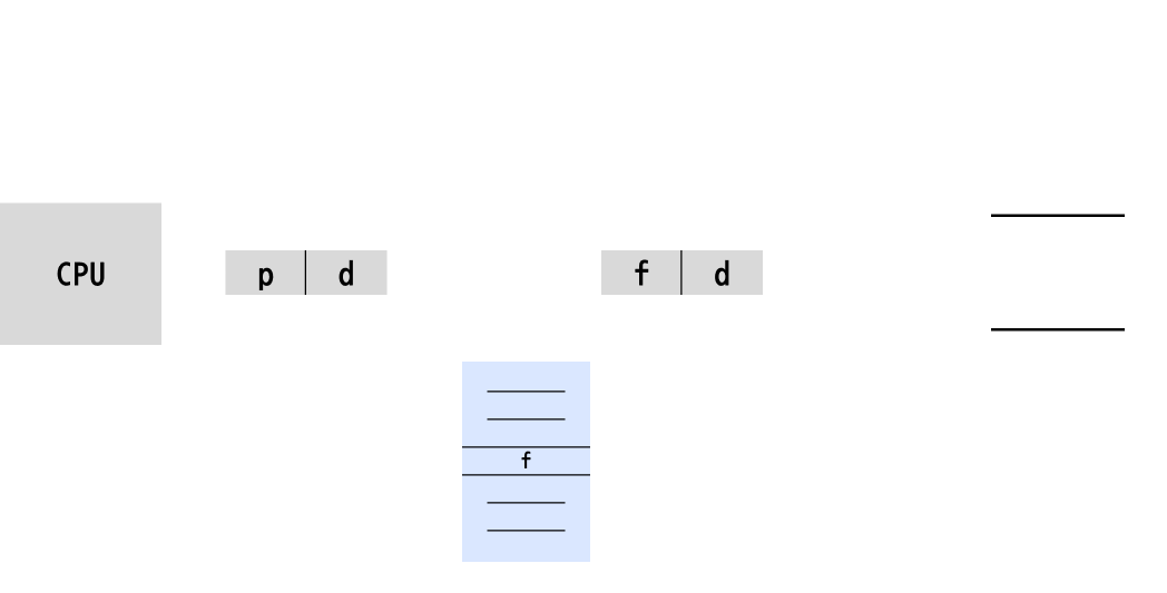 - 논리주소에서 p라는 숫자가 있는 공간을 frame 번호 f로 대체하여 물리주소로 바꿈