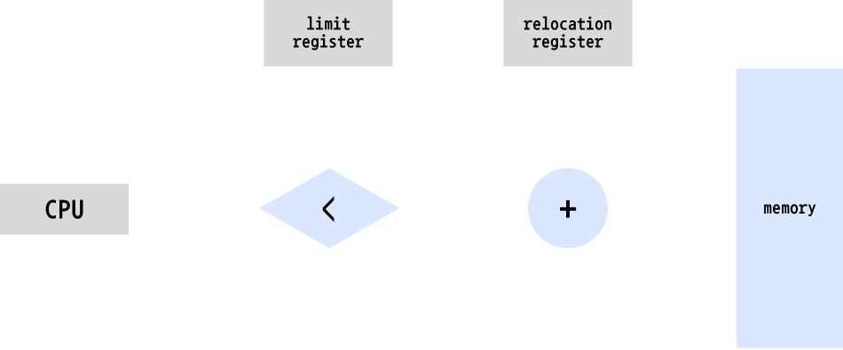 - relocation register 값은 물리주소 상에서 현재 실행 중인 프로세스가 위치하고 있는 시작 주소
