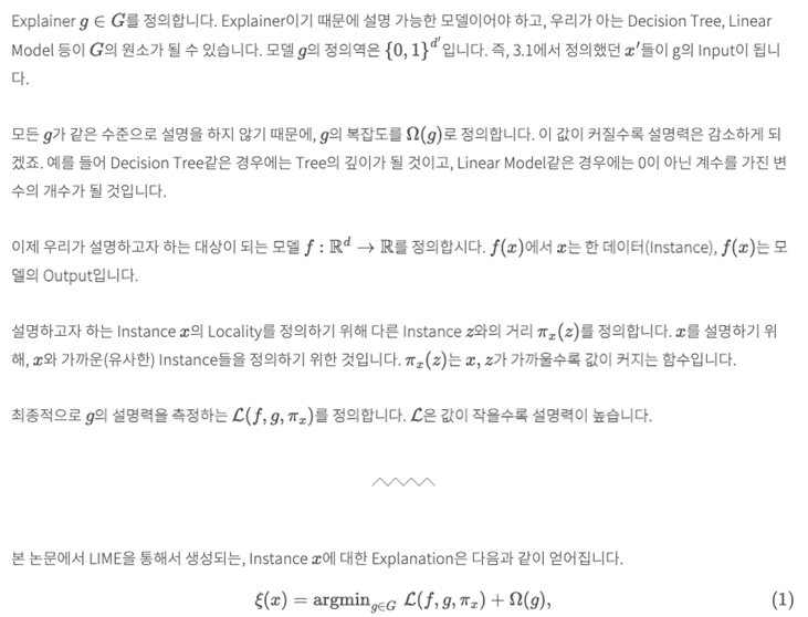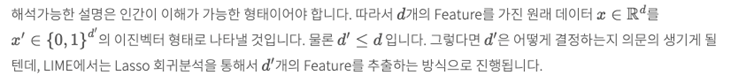 1. LIME은 분류에 사용한 블랙박스 모델 f가 무엇이든 적용할 수 있다(model-agnostic)