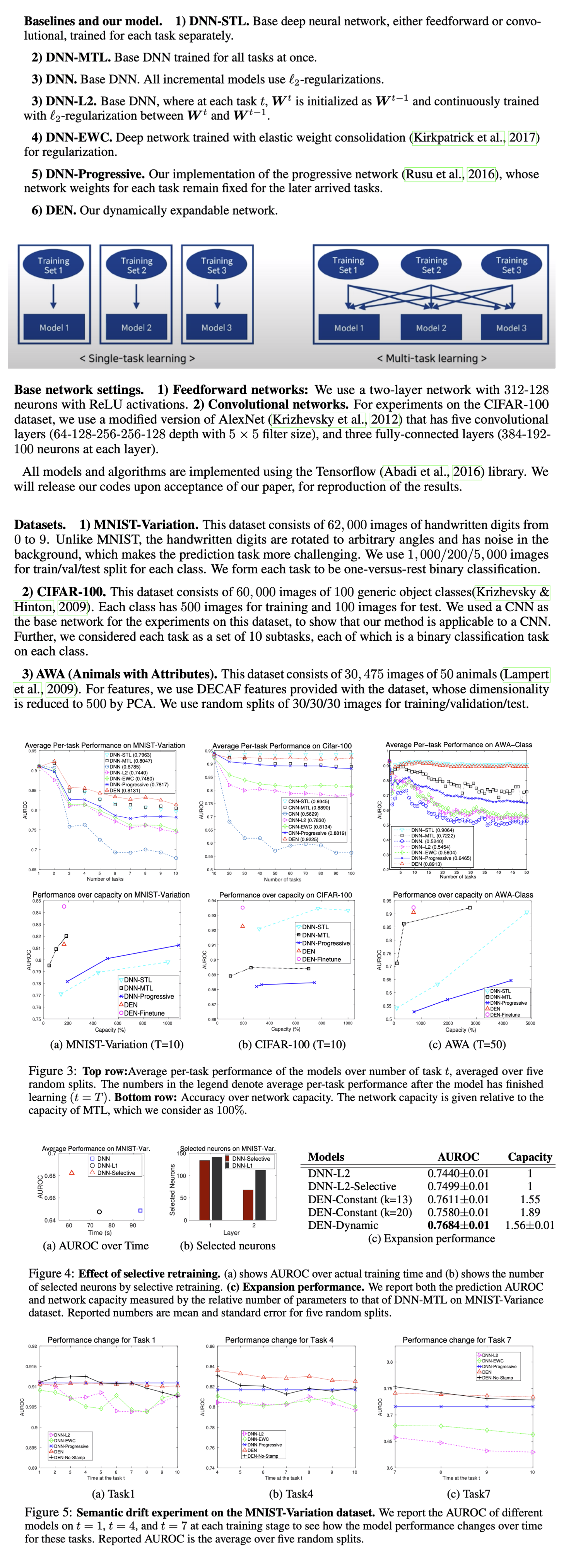 DEN을 만듬으로써 적은 Capacity의 multi task를 좋은 성능으로 train하는 model 개발.