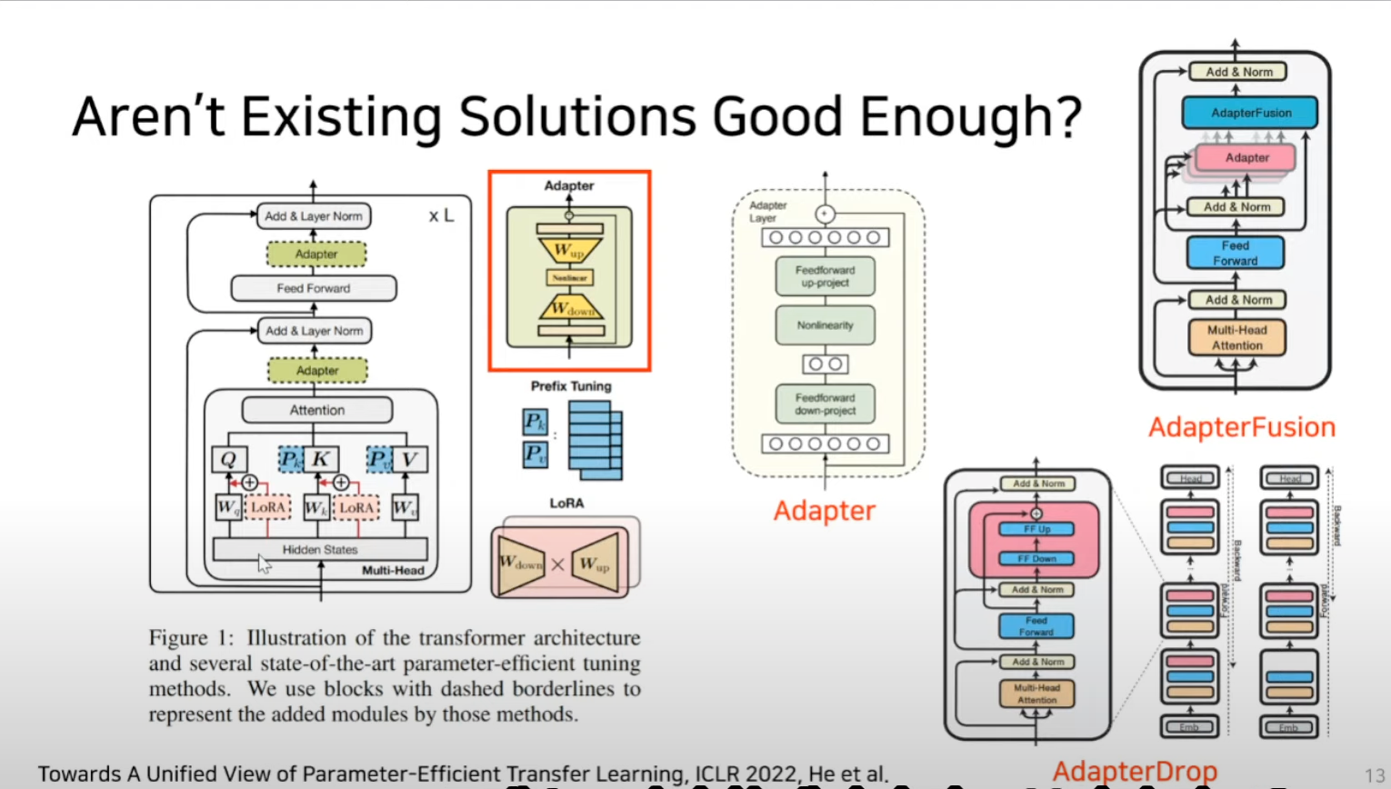 Add adapter layer : Feedforward down-projection과 Feedforward up-projection 이 두가지 matrix종류만 새롭게 학습하는 기법을 일컬음
