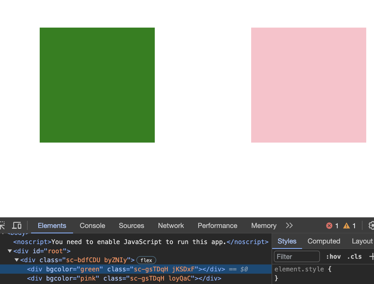 색상만 다른 두 컴포넌트가 있다고 가정해보자.