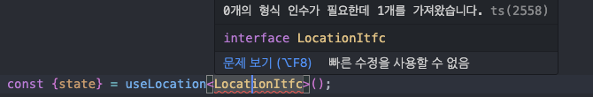 타입스크립트 환경에서 useLocation을 사용하면 기본 타입으로 any로 추론이 된다.