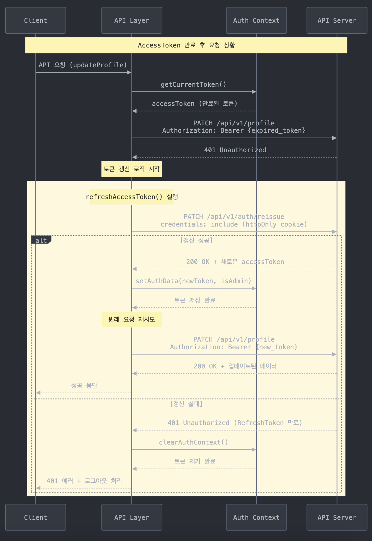 - accessToken 만료 시간이 30분이라, 만료 후 요청 시 401 에러가 발생했습니다.