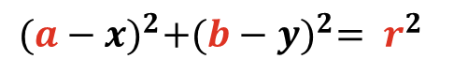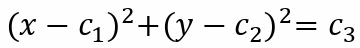 위 원의 방정식은 c1, c2, c3 3개의 파라미터를 가지고 있으므로, Hough transform을 그대로 사용하려면, c1, c2, c3의 3차원 파라미터 공간으로 변환시켜야 한다.