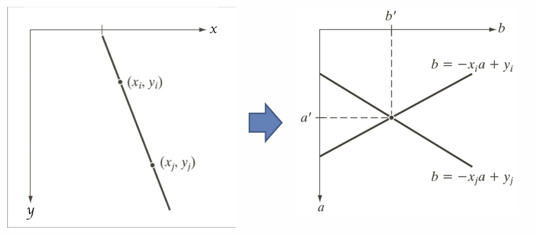 여러 번 사용되는 (a, b)의 조합은 입력 영상의 선이 된다.