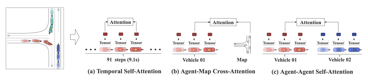 → 결국 이 decoder는 시간 관계, 맵 관계, agent 간 관계를 순차적으로 결합해 다음 patch를 생성하기 좋은 feature를 만듬