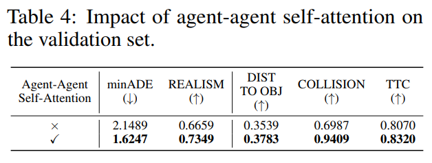 validation에서 collision realism이 0.6987 → 0.9409로 크게 올라가며, 논문은 이를 약 34.66% 개선으로 요약함, 즉 social interaction modeling이 핵심이라는 뜻