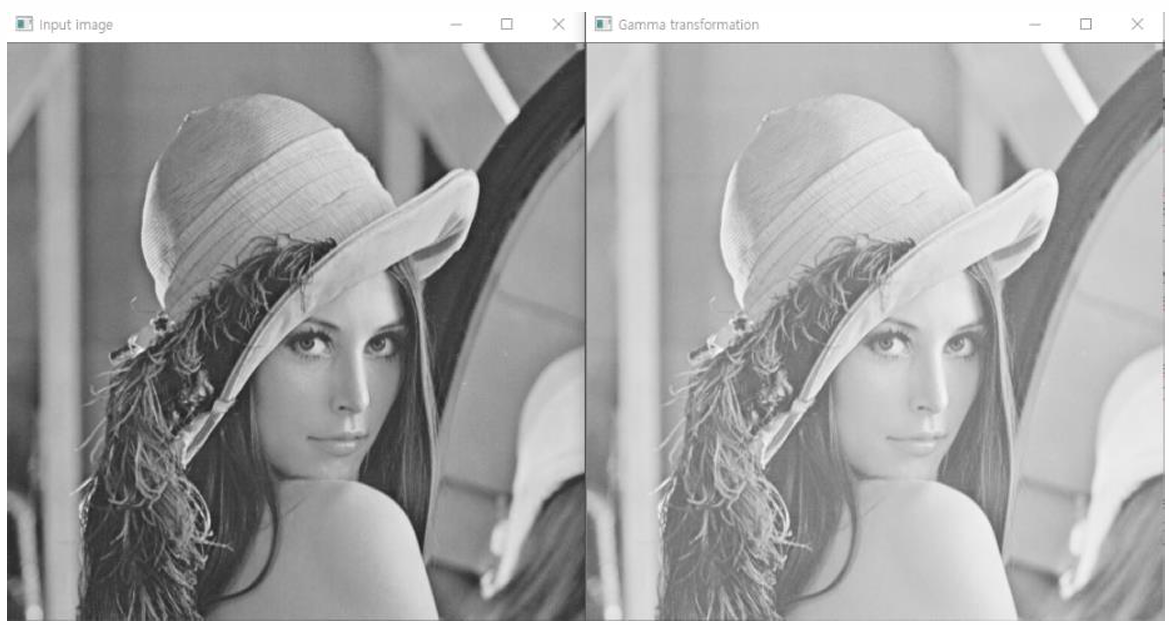 감마 값이 1보다 크면, 어두운 영역의 detail은 감소하고, 밝은 영역의 detail은 증가한다.