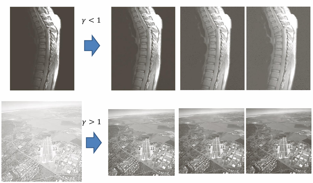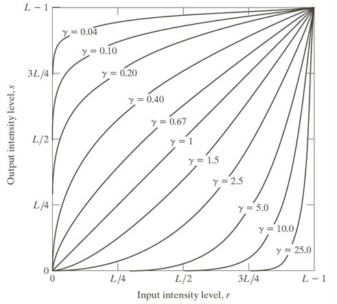감마 값이 1보다 작으면, 어두운 영역의 detail은 증가하고, 밝은 영역의 detail은 감소한다.