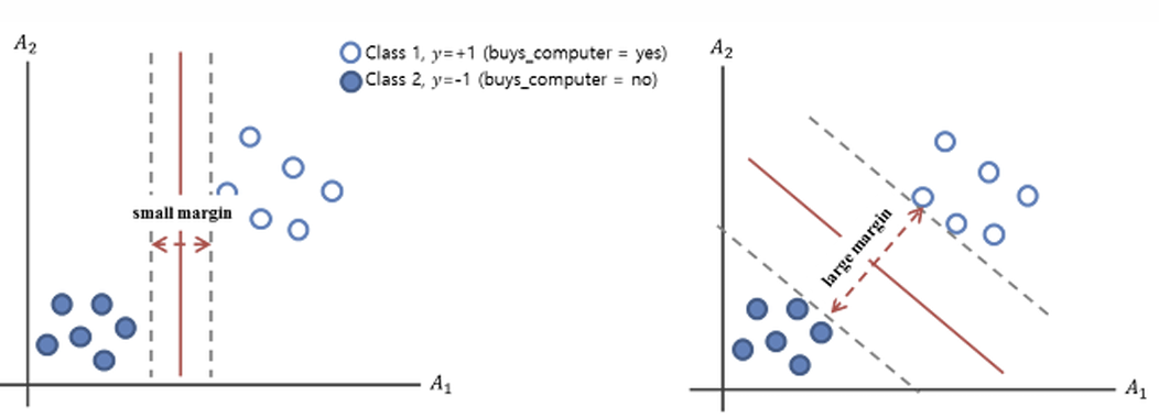 참고로, margin이 더 클수록 SVM의 성능이 더 좋다고 할 수 있다.