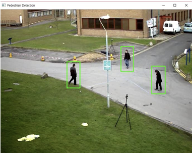 아래의 코드는 비디오 스트림에서 보행자를 감지하고, 감지된 보행자 주변에 경계 상자를 그리며, 그 결과를 실시간으로 표시하는 과정을 구현한다.
