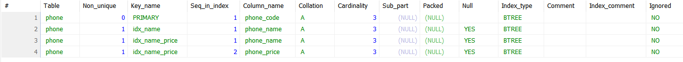 SHOW INDEX FROM phone;