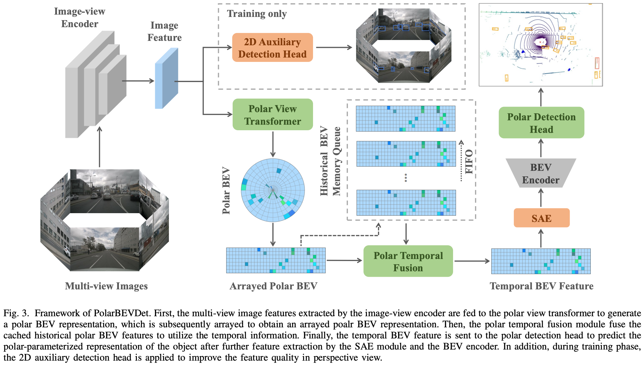 이러한 한계를 해결하기 위해 제안된 접근이 바로 Polar 좌표계 기반 BEV 표현이다. PolarBEVDet과 같은 모델은 BEV 공간을 반지름(radial)과 각도(angular) 축으로 구성하여, 거리 기반으로 격자를 조정한다.