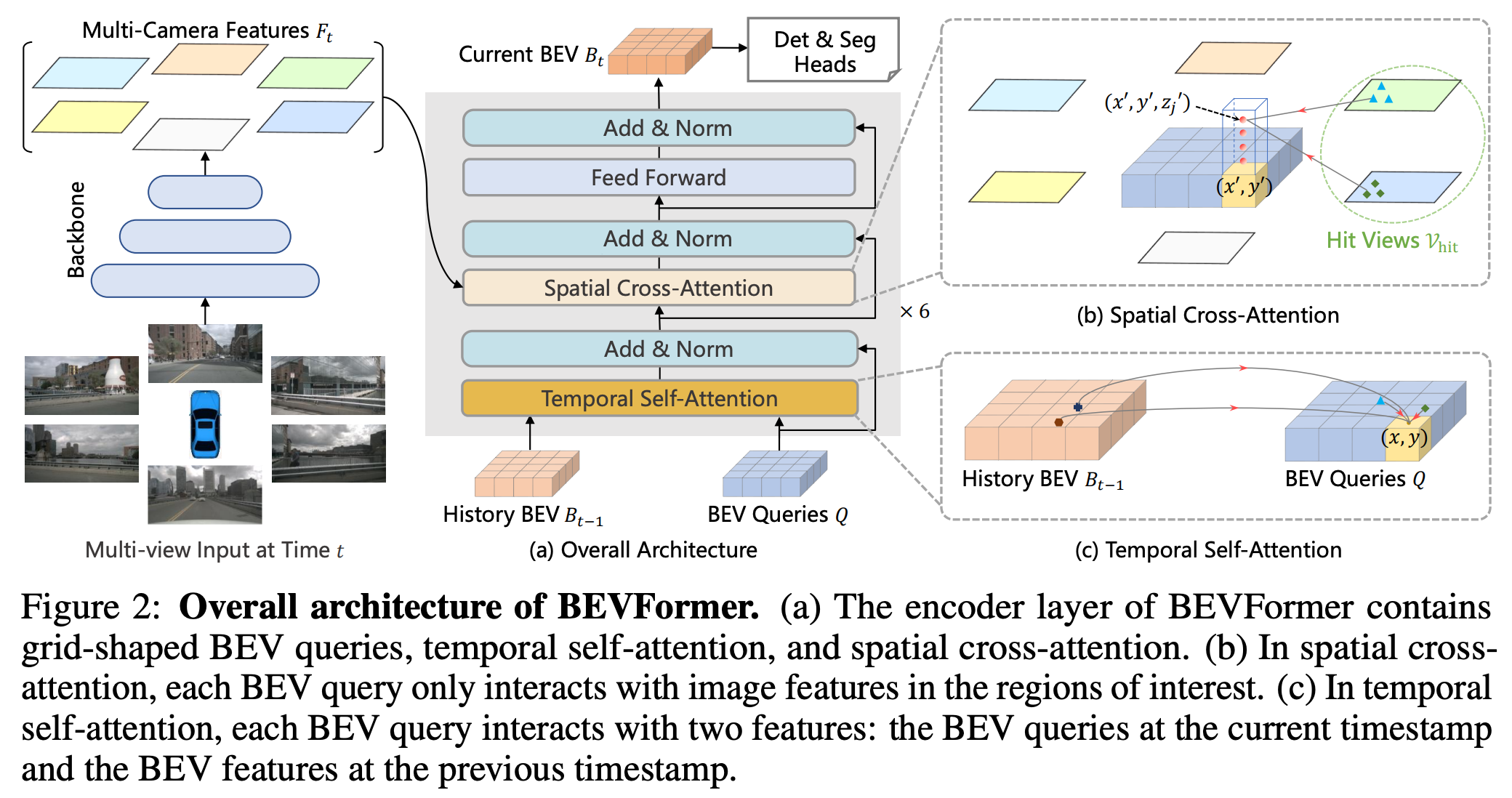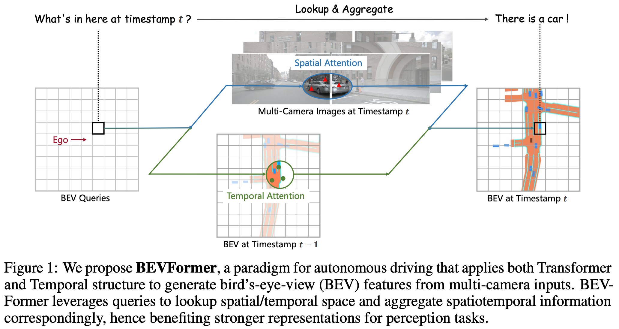 BEVFormer (CVPR 2022)는 BEV 공간 생성을 위해 query 기반의 Transformer 구조를 도입한 모델이다.