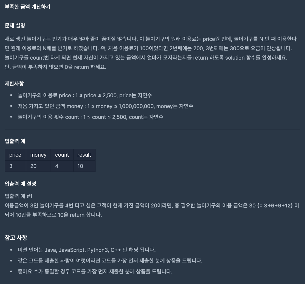 function solution(price, money, count){