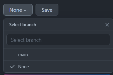 지금은 연습용으로 따로 브랜치 생성을 안할테니 main을 선택해줍니다. 선택하고 나면 main브랜치의 코드를 따라서 웹 페이지가 호스팅되게 됩니다.