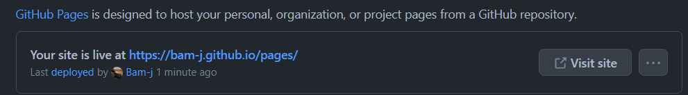 기본적으로 pages는 최상위 폴더(root)의 index.html을 가리킵니다. 해당 파일이 존재하지 않으면 README.md를 띄워주게 됩니다.