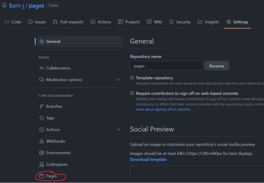 를 여는 방법은 매우 간단합니다. 열고자하는 프로젝트의 repository에 들어가서 Settings메뉴에 들어갑니다. 그럼 그곳에 Pages라는 메뉴가 보일텐데 해당 메뉴에 들어가줍니다.