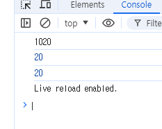 10+20 = 1020 으로 그냥 문자열로 더해졌고