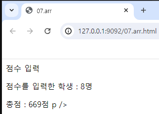 document.write("점수를 입력한 학생 : " + count + "명 <p / >");