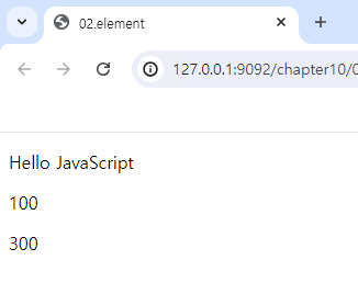 이 메서드는 "Hello JavaScript"를 반환하므로, p id="msg1" 요소에 "Hello JavaScript"가 표시된다.
