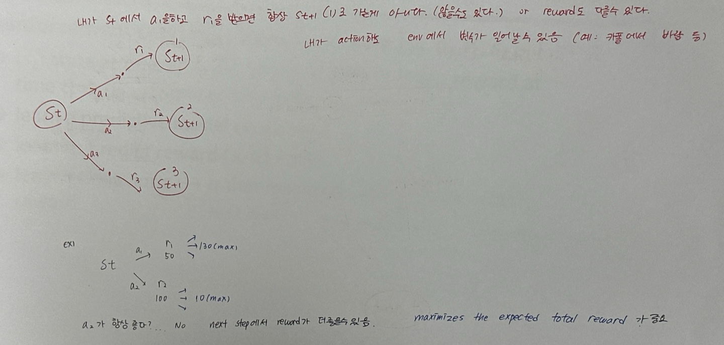 Stochastic : 확률적) 이 Action을 했을 때의 State와 Reward 값이 많음.