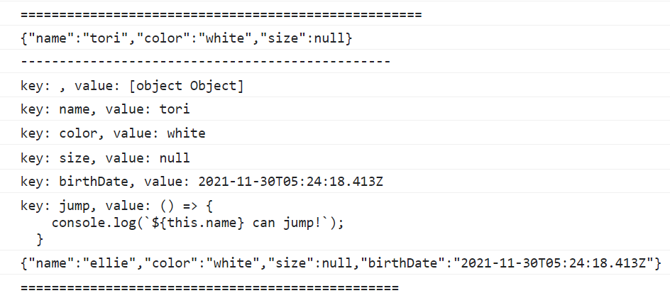 console.log(json, typeof json);