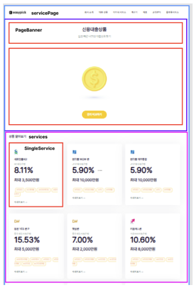 또한 똑같이 수정한다고 해도 실수로 인해 오류가 생길 확률이 더 커진다. 새로운 대출 상품이 추가 되었을때 매번 HTML 파일을 생성하고 연결해야하는 확장성의 제한 문제, 서버 자원 낭비 등의 문제가 있다. 그리하여 재사용하는 컴포넌트들을 구조화하여 이를 해결했다.