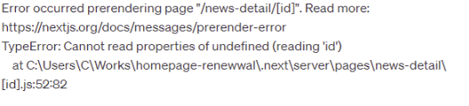 그러나 서버사이드에서는 특정 dynamic route로 이동했을 때의 데이터를 pre-rendering을 해야하는데 이것을 해주지 않아서 생긴 이슈였다!서버사이드에서는 param에 있는 값을 이용해서 업데이트를 해야 하는데, 이때 필요한 것이 getStaticPaths, getStaticProps이다.