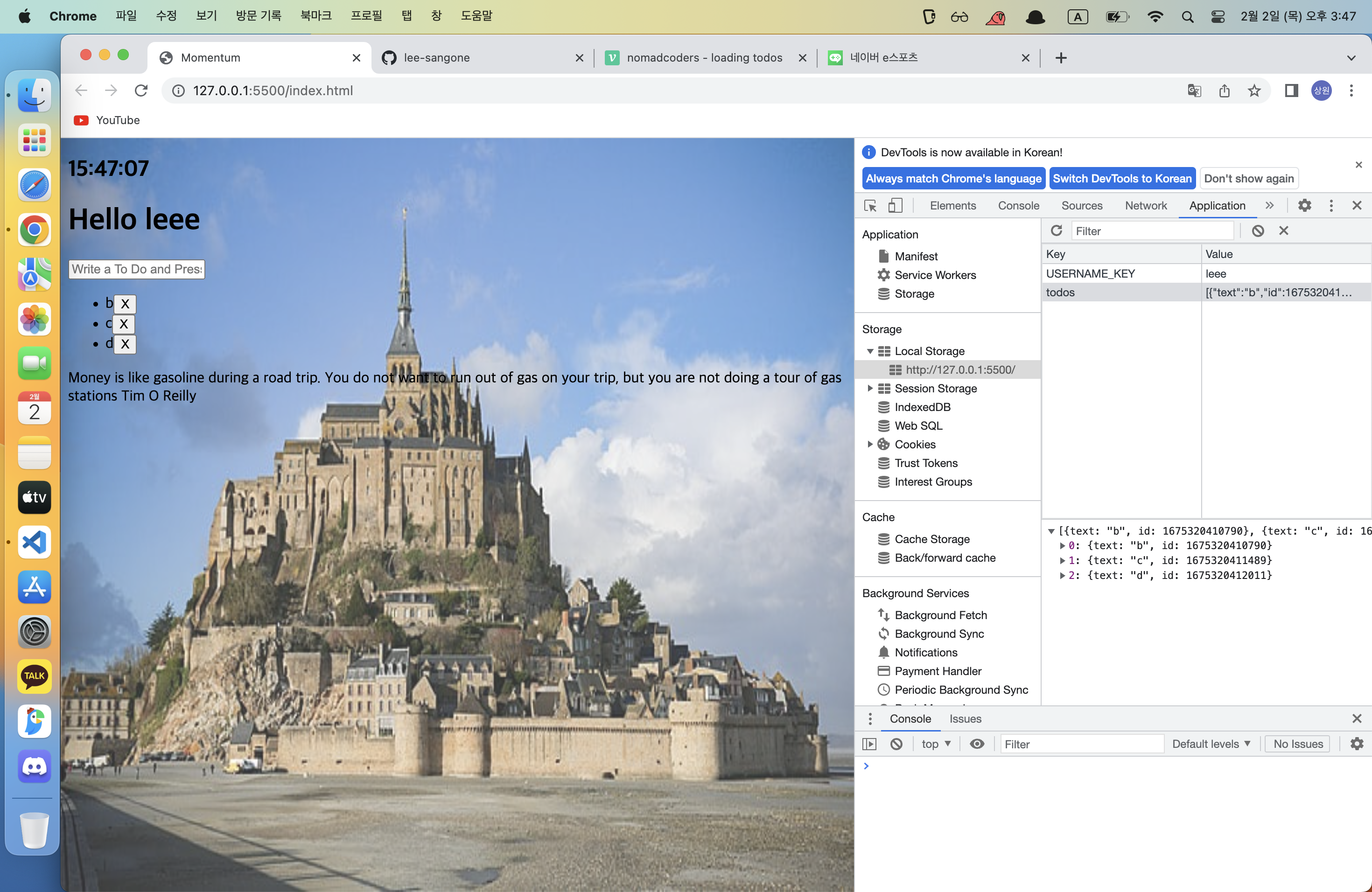 "a" 항목이 localstorage에서 완전히 지워진 상태를 확인할 수 있다.
