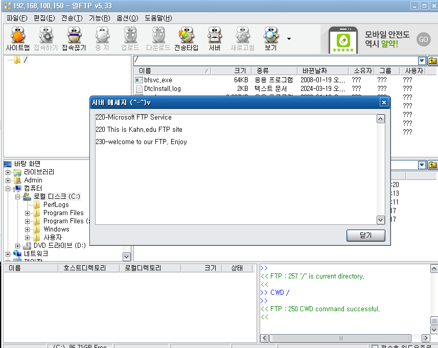 이후 IP 입력, 익명 접속을 하면 설정해둔 배너가 잘 나온다.
