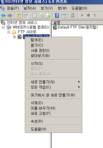 6.0 관리자에서 디폴트 FTP를 중지 시킨다.