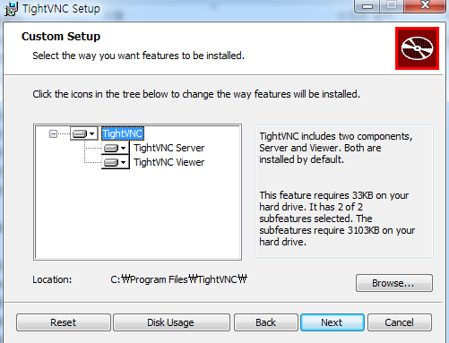 Server는 제외하고, Viewer만 설치한다.