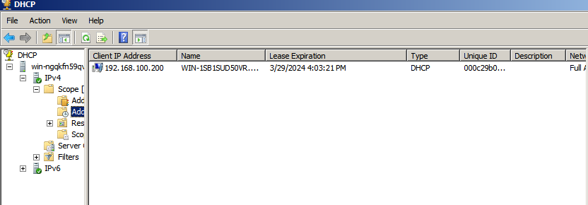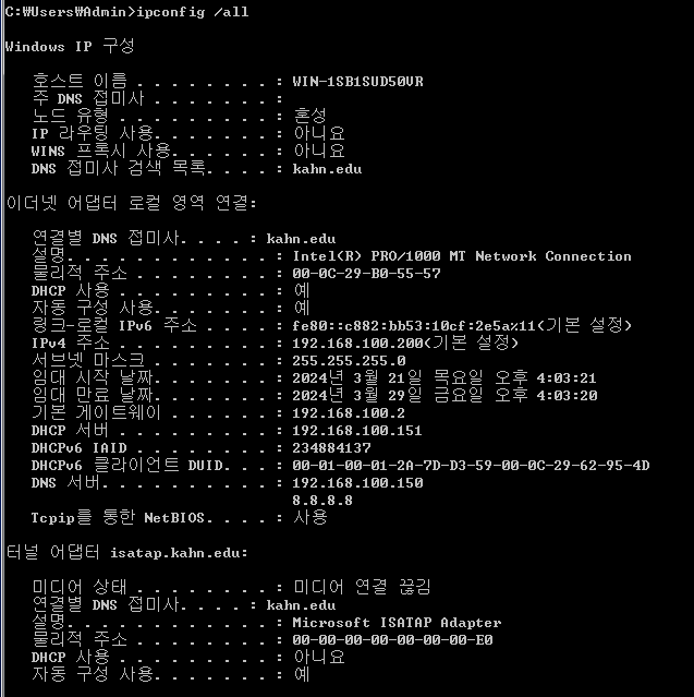 (DHCP 서버에서도 192.168.100.200번 IP를 잘 받은것으로 나온다.)