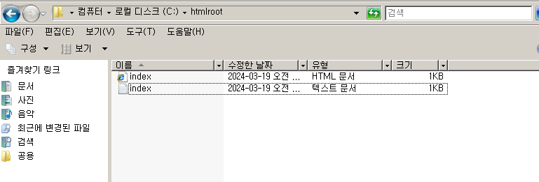 해당 위치에 index.html파일 생성