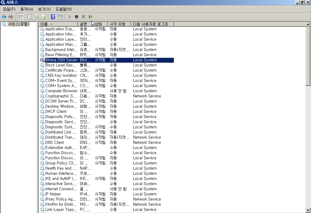 (관리도구>서비스에서 서비스 실행(자동))