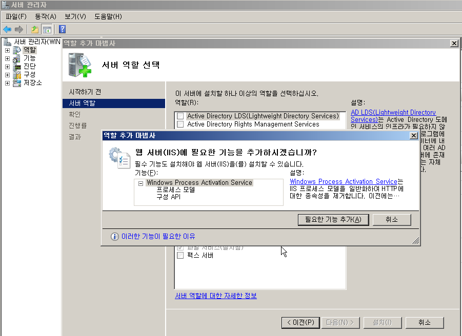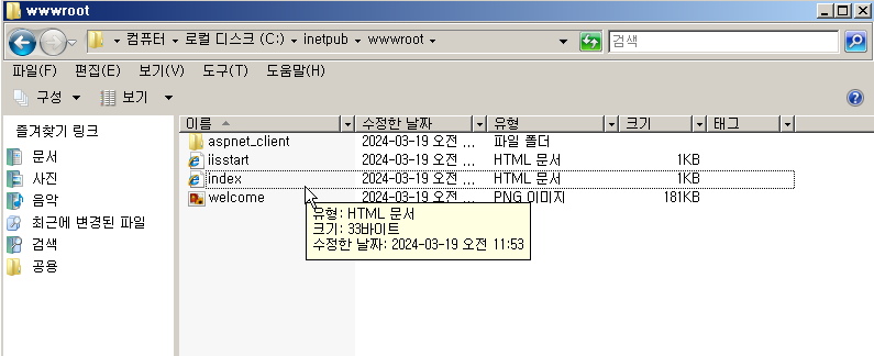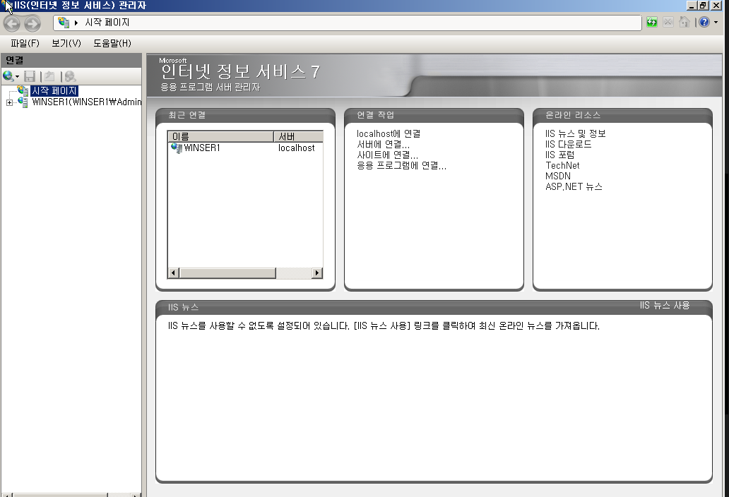 (관리도구>서버 관리자> 역할에서 IIS 추가)