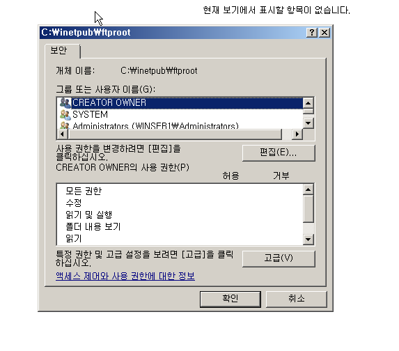 권한관련 오류가 발생하여, 속성 보안탭에 들어가서 일시적으로 Everyone 그룹에게 모든 권한을 열어주었다.