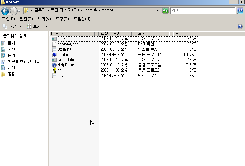 FTP 디폴트 디렉터리에 몇가지 파일을 추가한다.