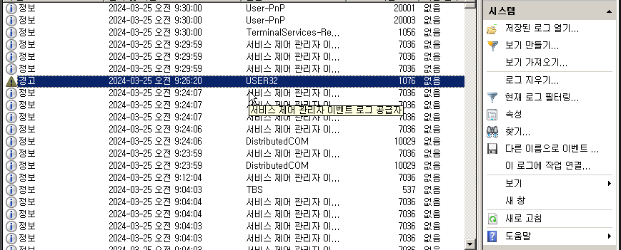 이후 WinSer2에 원격 접속을 해보고 이벤트 뷰어를 확인해본다.