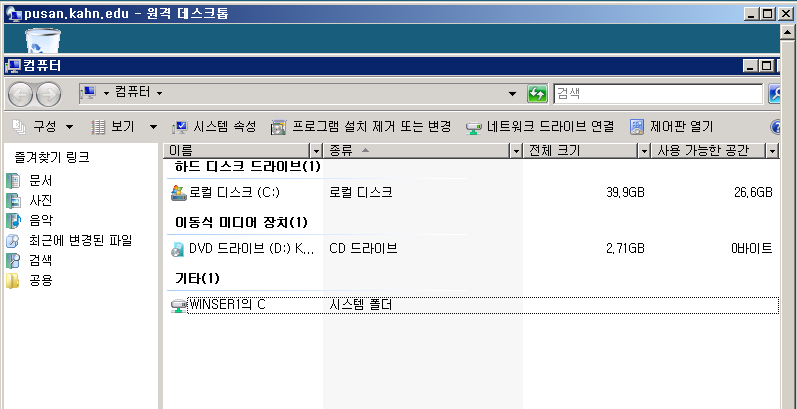 (연결 후 확인해보면, PDC의 C 드라이브(선택했던 것)가 자동으로 매핑되어 있는 것을 볼 수 있다, 그렇지만 원격으로 접속 시에만 볼 수 있다.)