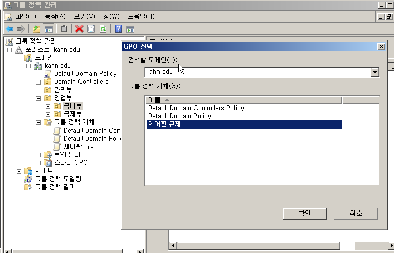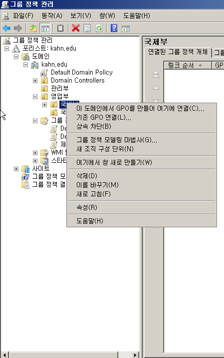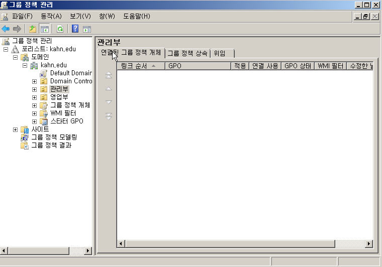 (이후, 다시 그룹 정책 관리로 돌아와 기존 GPO에 연결 설정을 통해여 OU(GP를 적용할 수 있는 최소 단위)에 적용시키면)