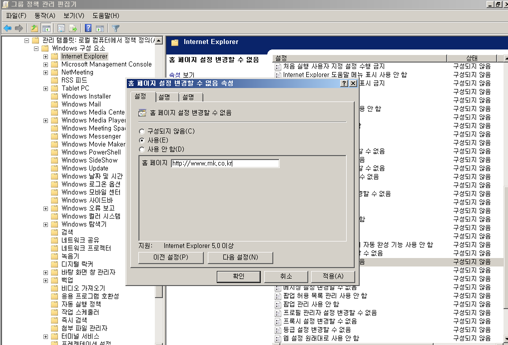 b. 그룹정책이 적용되는 머신에서 콘솔을 열고 gpupdate /force 해서 바로 적용시키거나,
