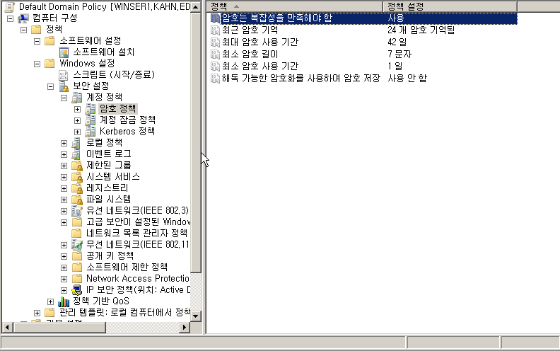 ◼ 보안설정 : 보안 강화를 위해서 도메인의 모든 사용자에 대해서 사용자의 암호 및 계정 잠금 방식 등을 지정할 수 있다.