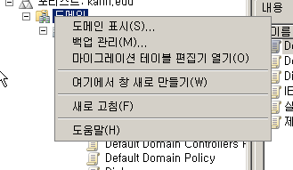 AD에서 사용자를 관리하려면 시작>관리도구>‘AD 사용자 및 컴퓨터’에서 관리할 수 있다.